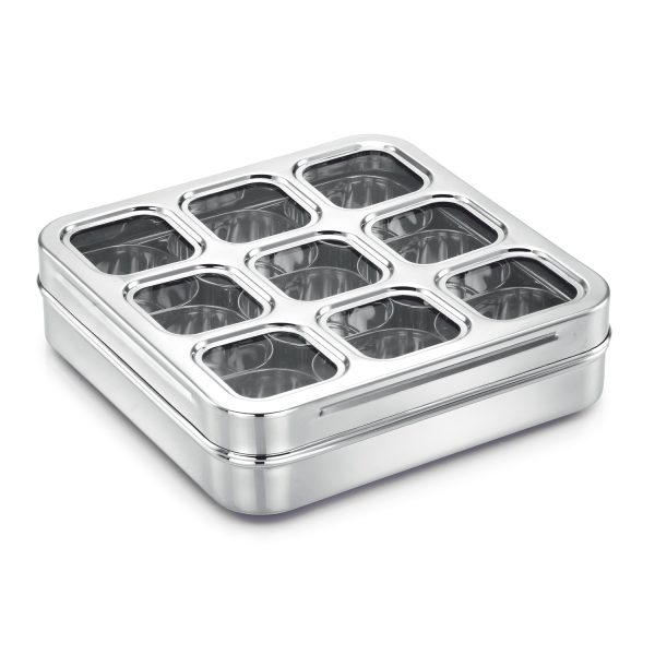 Dry Fruit Cum Spice Box Square St (9 Cups)Design